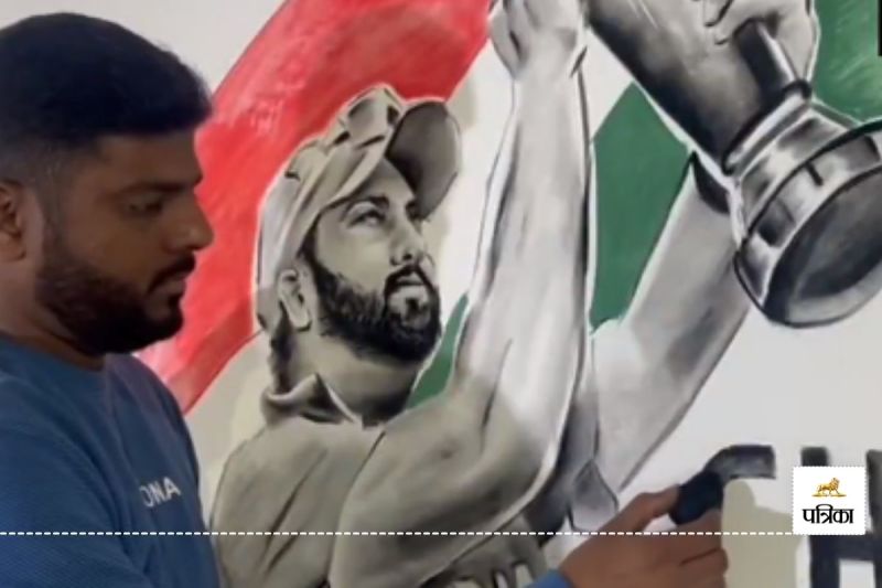 चित्रकार ने जुहैब खान अमरोहवी ने बताया कि मैं दिवार पर पेंटिंग बनाता हूं। चैंपियंस ट्रॉफी के फाइनल को लेकर रोहित शर्मा की चैंपियंस ट्रॉफी का कप उठाते हुए 6 फीट लंबा दिवार पर तस्वीर बनाया हूं। रोहित शर्मा को कप उठाते हुए देखन मेरा सपना है।