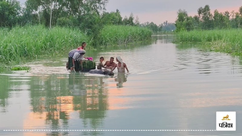 ओसिता जगदेपुर गांव के लोग बाढ़ के पानी से होकर गुजरने को मजबूर हैं। ग्रामीणों को न सिर्फ दैनिक जीवन में कठिनाइयों का सामना करना पड़ रहा है, बल्कि पशुओं के लिए चारा जुटाना भी एक बड़ी चुनौती बन गया है।