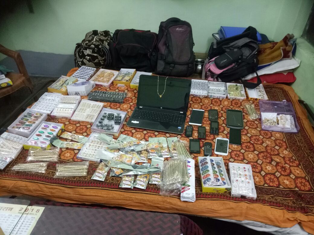 शातिर चोर राजेश के कब्जे से लगभग डेढ़ लाख रुपए का माल भी जप्त किया गया है। पुलिस इसे बड़ी सफलता मान रही है। पुलिस को राजेश की तलाश काफी समय से थी, इसके कब्जे से 10 मोबाइल 1 लेपटॉप एक सोने का मंगलसूत्र कई बैग कपड़े और लगभग 30 हजार रुपए के आर्टिफिशियल ज्वेलरी जप्त करने में सफलता मिली है।