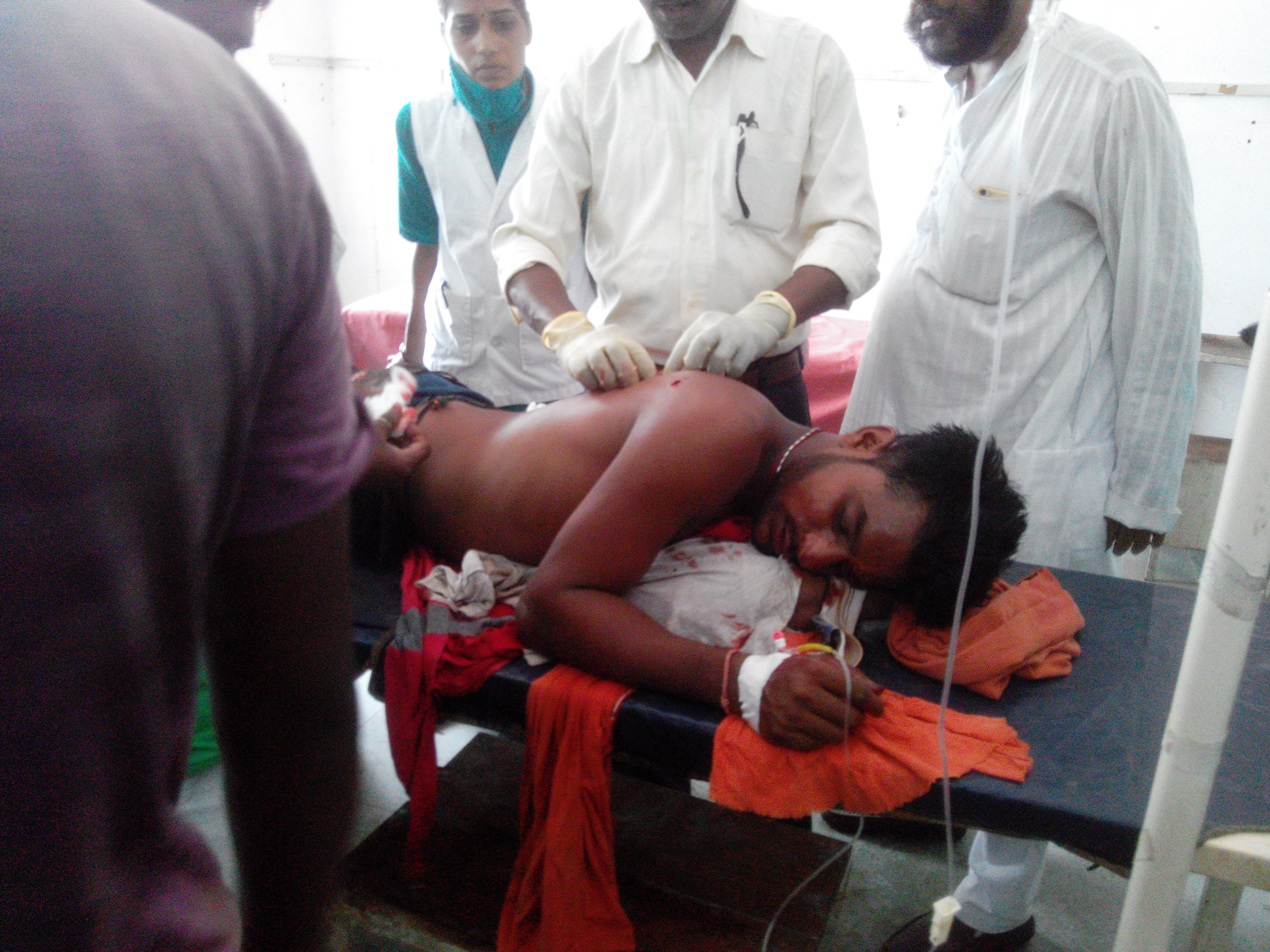 पीठ में घुसा बीम का रॉड, गम्भीर हालत में अस्पताल में भर्ती