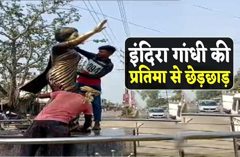 इंदिरा गांधी की प्रतिमा से छेड़छाड़ : पहनाए आपत्तिजनक कपड़े, फिर कांग्रेसियों ने गंगाजल से किया शुद्धिकरण