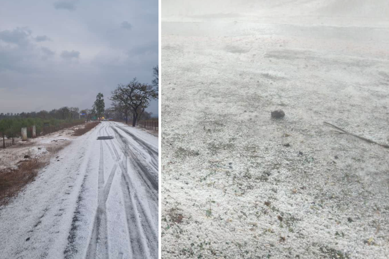 1 घंटे हुई ओलावृष्टि, मौसम हुआ सर्द