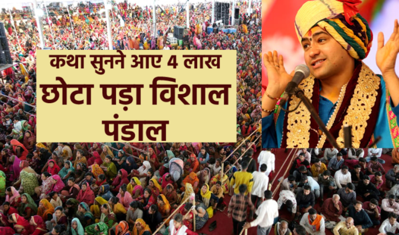 पं. धीरेन्द्रकृष्ण शास्त्री खुली जीप में ऊपर बैठकर कथा स्थल तक पहुंचे तो सड़क के दोनों ओर श्रद्धालुओं का हुजूम लग गया। इस दौरान उन्होंने श्रद्धालुओं का अभिवादन किया। श्रद्धालुओं ने रास्तेभर पुष्प वर्षा कर अभिनंदन किया। श्रद्धालु पं. धीरेन्द्रकृष्ण शास्त्री की एक झलक के लिए पलक पांवड़े बिछाकर खड़े रहे। वहीं कथा सुनने के लिए लाखों की संख्या में श्रद्धालु पहुंचे. इससे कथा पांडाल कम पड़ गया और हजारों लोगों ने पांडाल के बाहर खड़े होकर कथा सुनी। कई श्रद्धालु तो मंडी में टीनशेड के पिलरों पर बैठकर कथा सुनते रहे।
