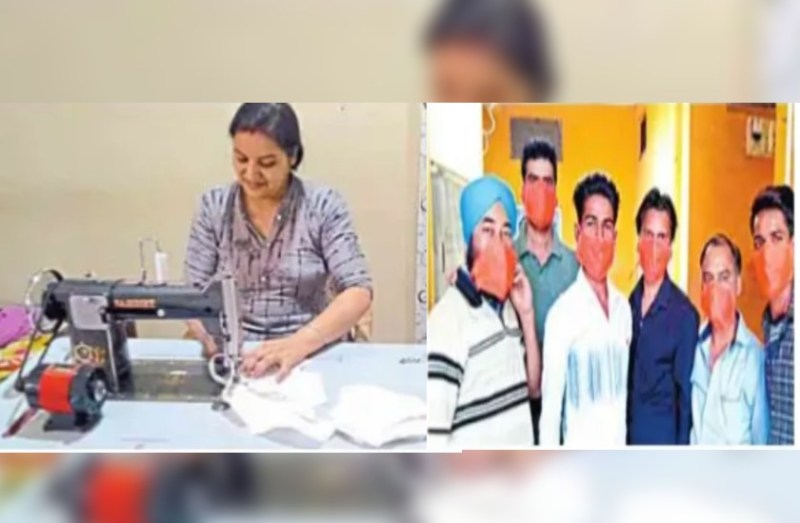 बाजार बंद हैं कपड़ा नहीं मिला तो पति की पगड़ियों से मास्क बनाने लगी ये महिला, लोगों को मदद पहुंचा रहा परिवार