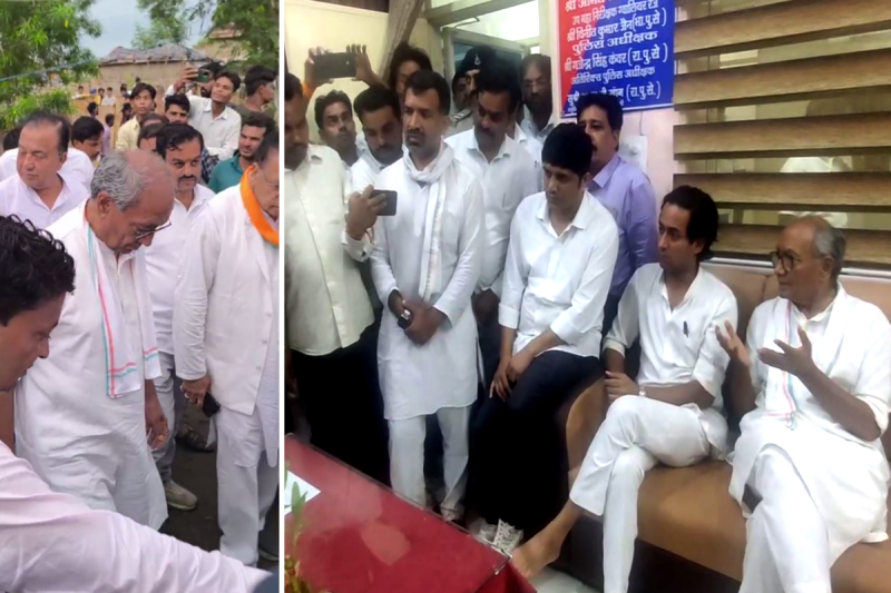 युवक को मल खिलाने का मामला : पीड़ित के गांव पहुंचे दिग्विजय सिंह (Photo Source- Patrika Input)