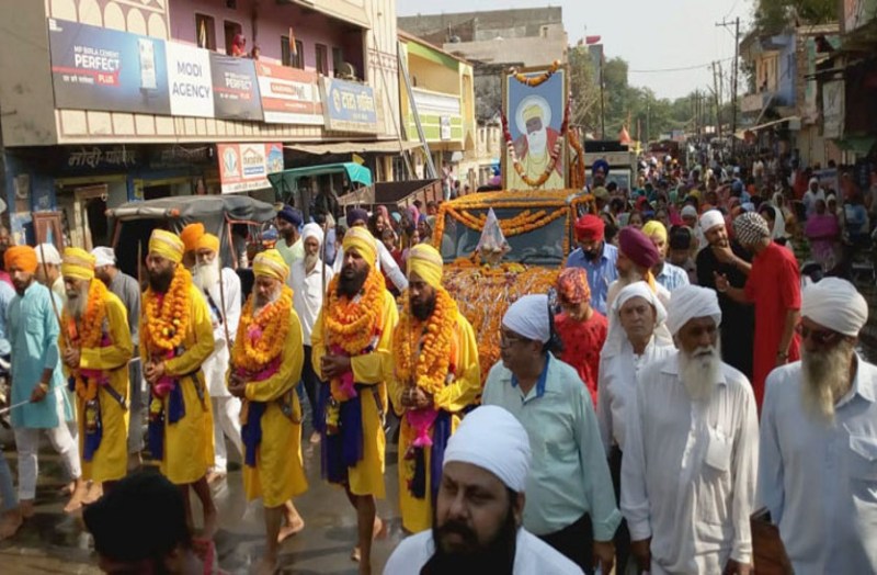 गुरुनानक जयंती के अवसर पर सिख समाज द्वारा बस स्टैंड स्टेंड स्थित हरि मंदिर से पंज प्यारो के साथ चल समारोह निकाला गया। जो नगर के जय स्तम्भ चौराहा, नया बाजार, पुराना बाजार, तालाब रोड, मंडी रोड, टाकीज रोड़ होते हुए वापिस हरि मंदिर पहुंचा। चल समारोह में गुरु नानक जी की प्रतिमा को पालकी में रखकर नगर की प्रमुख सड़कों पर भ्रमण कराया गया। चल समारोह के दौरान सिख समाज के लोगों ने पानी से चल समारोह के रास्ते को झाड़ू से साफ किया। जिसके पीछे -पीछे गुरु नानक की प्रतिमा चल रही थी इस दौरान सिख समाज के बूढ़े बच्चे और महिलाएं गुरुवाणी गाते जा रहे थे, वही लोगों को लंगर भी बांटा गया। आचार संहिता के चलते इस मौके पर भारी पुलिस बल मौजूद रहा।