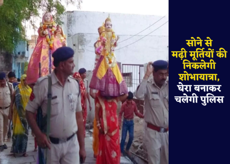 अशोकनगर। एमपी में इन दिनों गणगौर उत्सव की धूम है। प्रदेश का सबसे अनोखा गणगौर उत्सव चंदेरी में मनाया जाता है। यहां गणगौर की चार फीट ऊंची करीब 150 साल पुरानी मिट्टी की प्रतिमाएं हैं। इनका स्वर्ण श्रृंगार करके शोभायात्रा निकाली जाएगी। इस शोभायात्रा में हजारों लोगों के शामिल होने का अनुमान है। स्वर्ण श्रृंगार वाली इन मूर्तियों की इस दौरान सुरक्षा के लिए अतिरिक्त इंतजाम रहेंगे।