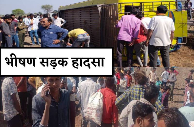 भीषण सड़क हादसा, ओवरलोड बस पलटी, 7 यात्री गंभीर घायल