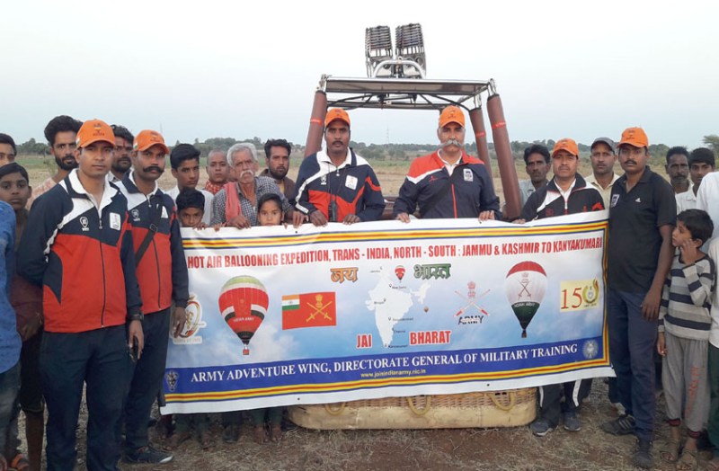 जय भारत अभियान के तहत भारतीय सेना की छह सदस्यीय टीम होट एयर बैलून से कश्मीर से कन्याकुमारी तक की यात्रा कर रही है। 3236 किमी लंबी सेना की यह यात्रा जम्मू से छह नबंवर से शुरू हुई, जो रोजाना विभिन्न शहरों में पहुंचते हुए 29 दिसंबर को कन्याकुमारी पहुंचेगी। बैलून के पायलट लेफ्टिनेंट कर्नल विवेक अहलावत ने बताया कि वह टिबरी, जालंधर, चंडीगढ़, दिल्ली, आगरा, ग्वालियर और शिवपुरी पहुंचे। उन्होंने बताया कि अब तक बैलून फ्लाइंग में लगातार चार घंटे तक की उड़ान का रिकॉर्ड था, मंगलवार को सुबह सात बजे शिवपुरी से गुना के लिए रवाना हुए और फ्लाइंग का नया रिकॉर्ड बनाने का निर्णय लिया। लगातार आठ घंटे की फ्लाईंग के बाद दोपहर करीब साढ़े तीन बजे बैलून शहर से 10 किमी दूर रांवसर और खैरा गांव के बीच में उतारा। जिसे देखने के लिए लोगों की भीड़ लग गई। उन्हें 23 नवंबर को भोपाल पहुंचना है। टीम में को-पायलट उमानंदसिंह, मेजर अनुराज राजावत, सूबेदार नवीनकुमार, हवलदार एचकेसिंह और लांस नायक दीपकसिंह पटेल भी शामिल हैं।