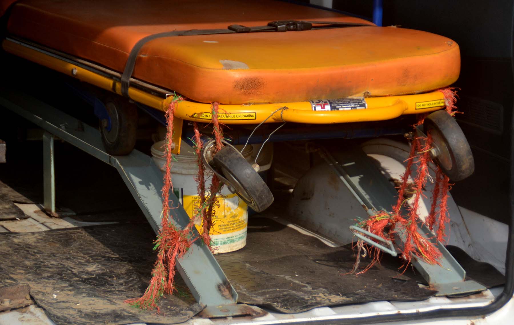रस्सी से बंधा था एंबुलेंस का स्ट्रेचर