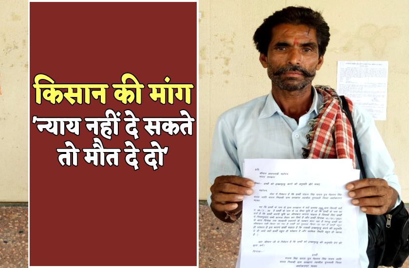दरअसल, मध्य प्रदेश में एक किसान पिछले 15 वर्षों से अपनी जमीन से ही बेदखल है और उसे छुड़वाने के लिए अबतक वो इंसाफ का लगभग हर दरवाजा खटखटा चुका है। लेकिन, उसकी पीड़ा अबतक किसी को दिखाई नहीं दी। अब लाचार सरकारी तंत्र से मायूस होकर किसान ने मुख्यमंत्री, प्रधानमंत्री और राष्ट्रपति को एक पत्र लिख दिया है, जिसमें उसने इच्छा मृत्यु की मांग की है।