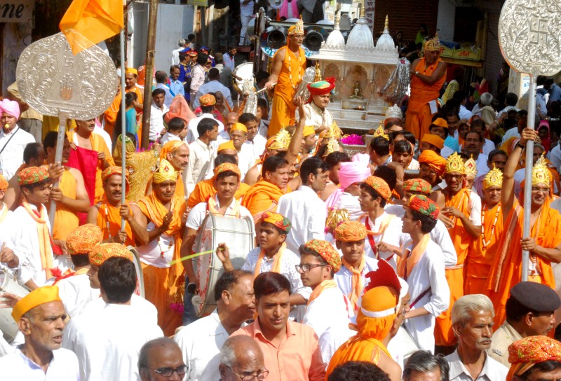 शोभायात्रा में सबसे आगे घोड़े पर सवार युवा, हाथी पर सवार समवसरण के मुख्य पात्र और बग्घी पर सवार इंद्र-इंद्राणी चल रहे थे। बीच-बीच में बैंड व ढोल-नगाड़े बज रहे थे। जिन युवा नृत्य करते हुए चल रहे थे।इसके बाद विभिन्न महिला संगठनों की महिलाएं आकर्षक डे्रस कोड व साज-सज्जा के साथ ध्वज लेकर चल रही थीं। श्रीजी सेवा संगठन के सदस्य पालकी में विराजमान भगवान को लेकर चल रहे थे। इनके पीछे इंद्र अपने ध्वज लेकर चल रहे थे। शिवपुरी से आए रथ के आगे मुनिश्री अभय सागर महाराज ससंघ चल रहे थे।गुना से आए वीर सेवादल, पारस मित्र मंडल व दिगंबर जिन शासन सेवा संघ सहित अन्य संगठनों के दिव्य घोष शोभायात्रा में शामिल हुए।