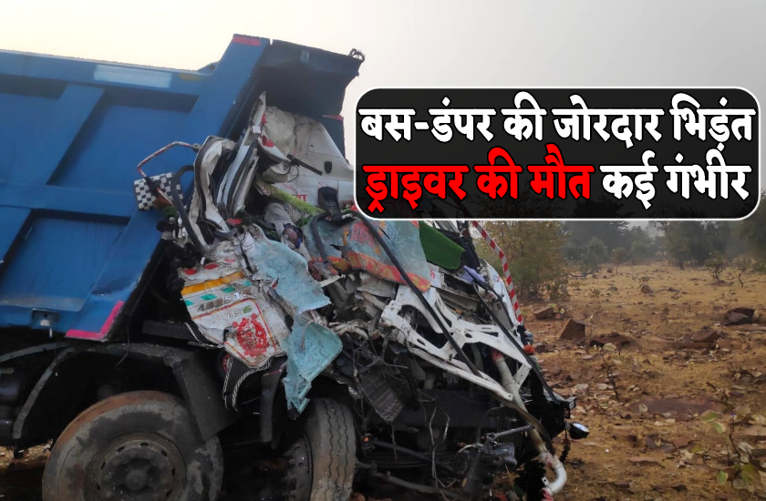 बस और डंपर के बीच आमने - सामने की जोरदार भिड़ंत, ड्राइवर की स्पॉट पर मौत, कई घायल