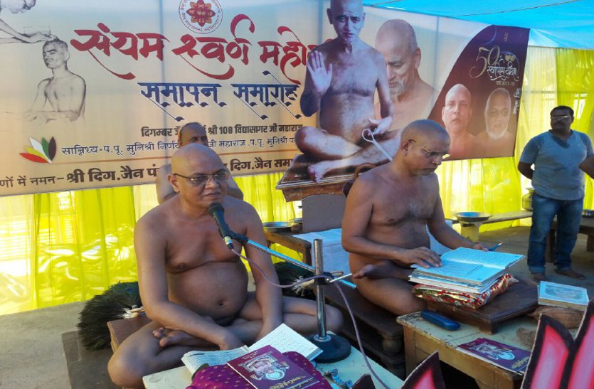आचार्य श्री विद्यासागर जी महाराज के दीक्षा के 50 वर्ष पूर्ण होने पर जैन समाज ने संयम स्वर्ण महा महोत्सव मनाया। जिले भर के जैन मंदिरों में आचार्य श्री की महापूजन की गई मुख्य कार्यक्रम सुभाष गंज जैन मंदिर में मुनि श्री निर्णय सागर जी महाराज मुनि श्री पदम सागर जी महाराज के सानिध्य में आचार्य श्री की महा पूजन की गई दोपहर को आचार्य छत्तीसी विधान का आयोजन होगा विधान में प्रत्येक घर से लगभग सभी लोग शामिल होंगे। महा पूजन के लिए जैन समाज की विभिन्न महिला संगठनों द्वारा अष्ट द्रव्य के थाल सजाकर लाए गए तथा शैलेंद्र श्रंगार के मधुर भजनों के साथ संगीत मय महा पूजन का आयोजन किया गया।