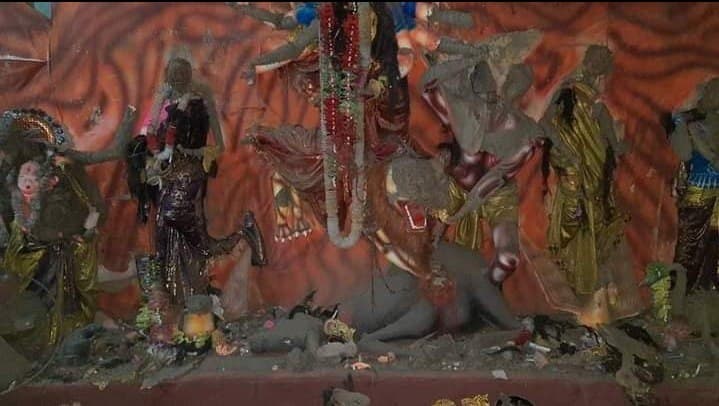 बांग्लादेश में यह घटना गत शनिवार सात अगस्त की है। यहां कुछ कट्टरपंथियों ने अल्पसंख्यक हिंदू समुदाय के कई घरों, दुकानों और मंदिरों पर हमला किया। घटना बांग्लादेश के खुलना जिले के रूपशा उपजिला शियाली गांव की है। बांग्लोदश हिंदू यूनिटी काउंसिल ने सोशल मीडिया पर कट्टरपंथी इस्लाममिक आतंकियों द्वारा की गई तोडफ़ोड़ की कुछ तस्वीरें शेयर की हैं। यह तस्वीरें सोशल मीडिया पर वायरल हो रही हैं। हालांकि, मंदिरों पर हमला करने के आरोप में बांग्लादेश की पुलिस ने छह लोगों को गिरफ्तार किया है। लेकिन कुछ वेबसाइट गिरफ्तारियों की संख्या अलग-अलग बता रही हैं।