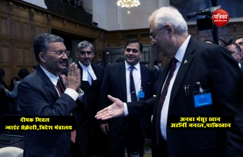 भारत के पूर्व नौसेना अधिकारी कुलभूषण जाधव पर पाकिस्तान ने जासूसी का आरोप लगाया है। इस पर आईसीजे में चार दिनों तक सुनवाई चलेगी। बीते 14 फरवरी को हुए आतंकी हमले के बाद दोनों देशों के बीच तनातनी काफी बढ़ चुकी है। यही वजह रही कि वहां मंसूर खान की ओर से बढ़े हाथ को ज्वाइंट सेक्रेटरी दीपक मित्तल ने थामने से इनकार कर दिया। यह वाकया तब का है, जब दोनों आईसीजे में सुनवाई से पहले एक दूसरे के आमने-सामने आए थे। इस दौरान मंसूर खान ने दीपक मित्तल की तरफ हाथ बढ़ाया, लेकिन मित्तल ने हाथ न मिलाकर दूर से ही हाथ जोड़ लिए।