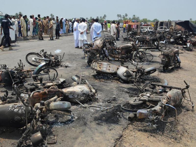 इस्लामाबाद। पाकिस्तान के बहावलपुर में रविवार सुबह एक तेल के टैंकर में आग लगने के कारण 123 लोगों की जलकर मौत हो गई। 100 से ज्यादा घायल हुए हैं। हालांकि, मृतकों की अभी तक स्पष्ट नहीं हो सकी है। स्थानीय लोगों के मुताबिक ये संख्या इससे ज्यादा भी हो सकती है। बहावलपुर से होकर गुजर रहे राष्ट्रीय राजमार्ग पर हुए इस भीषण हादसे में 100 से भी ज्यादा लोग गंभीर रूप से जल गए हैं।