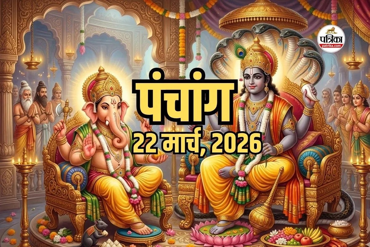 Aaj Ka Choghadiya :Aaj Ka Panchang 22 March 2026: आज का पंचांग 22 मार्च 2026, रविवार का दिन ज्योतिषीय दृष्टि से विशेष महत्व रखता है। आज चतुर्थी तिथि, भरणी नक्षत्र और वैधृति योग का संयोग बन रहा है, जो कुछ कार्यों के लिए शुभ तो कुछ के लिए सावधानी बरतने का संकेत देता है। विनायक चतुर्थी, विश्व जल दिवस और राष्ट्रीय चैत्र मास का प्रारंभ इस दिन को और भी महत्वपूर्ण बनाता है। आज के दिन चर, लाभ, अमृत और शुभ चौघड़िया (Choghadiya Today Timing) में नए कार्य प्रारंभ करना लाभकारी रहेगा, जबकि राहुकाल और दिशा शूल को ध्यान में रखते हुए यात्रा व महत्वपूर्ण निर्णय लेने चाहिए। इस पंचांग में आपको शुभ मुहूर्त, राहुकाल, नक्षत्र, योग, व्रत-त्योहार और पूरे सप्ताह के ज्योतिषीय अपडेट एक ही स्थान पर मिलेंगे।