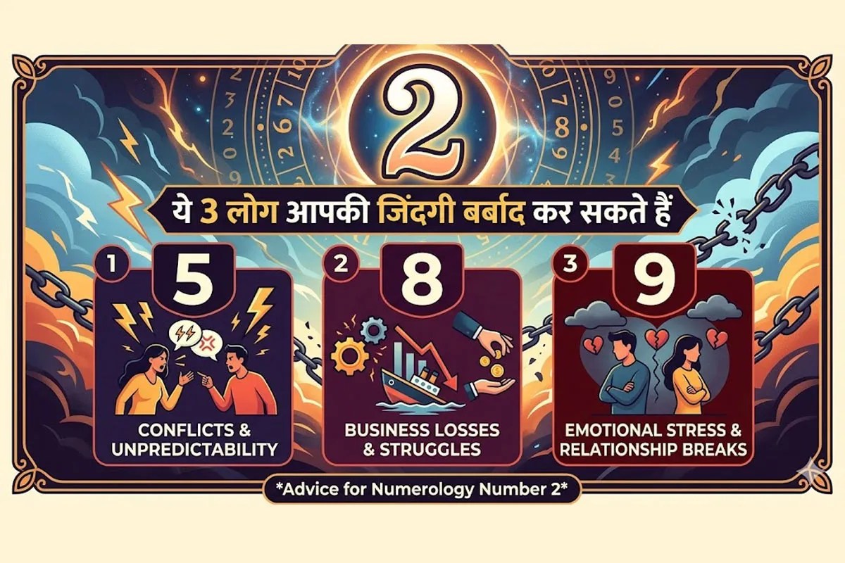 Ank Jyotish Numerology : न्यूमरोलॉजी में नंबर 2 वाले लोगों को तीन खास तरह के लोगों से सच में दूरी बनाकर रखनी चाहिए नहीं तो, उन्हें बहुत सारी बहस और कुछ बहुत बड़े नुकसान का सामना करना पड़ सकता है। न्यूमरोलॉजी (Numerology Number 2) सिर्फ लकी नंबरों के बारे में नहीं है। यह असल में आपको इस बारे में एक हिंट देता है कि आप किसके साथ नैचुरली क्लिक करेंगे और किसके साथ स्ट्रगल करेंगे। आइए देखें कि नंबर 2 वाले लोगों की अक्सर किसके साथ नहीं बनती।