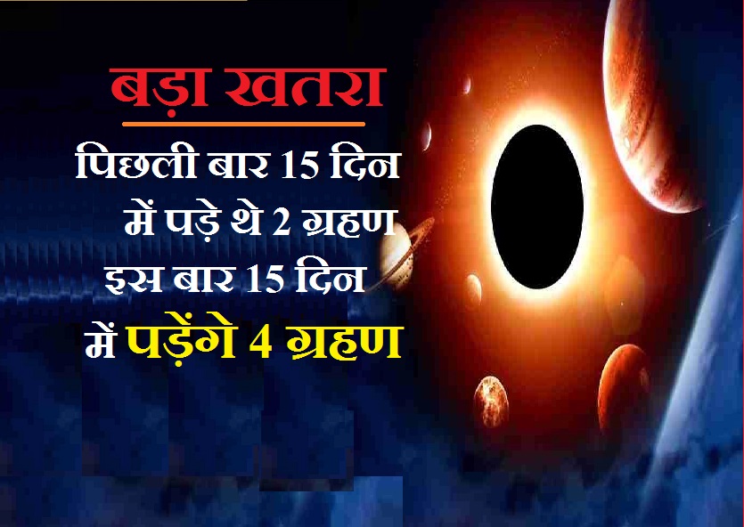दरअसल पहले सूर्य ग्रहण (Solar eclipse) व चंद्र ग्रहण (lunar eclipse) के बीच 15 दिन का अंतर होगा, वहीं दूसरे सूर्य ग्रहण व चंद्र ग्रहण के बीच भी 15 दिन का ही अंतर रहेगा।