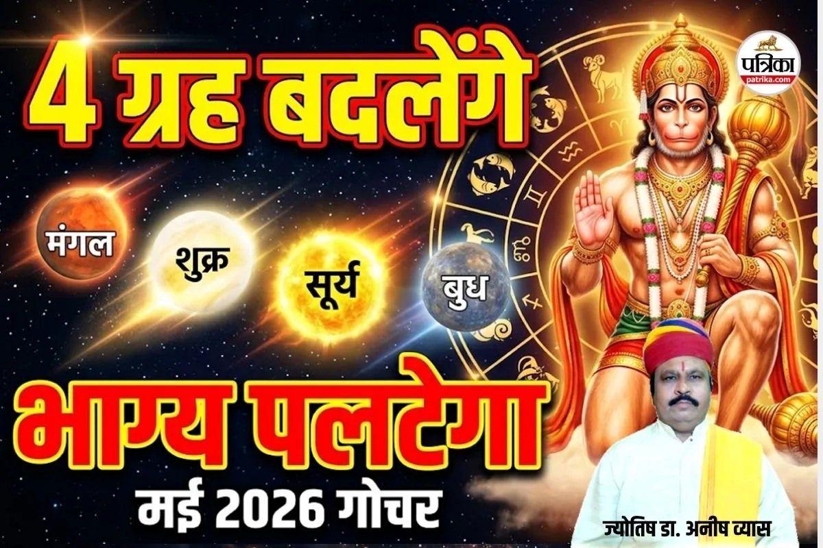 Grah Gochar May 2026 : ज्योतिष की दृष्टि से वर्ष 2026 काफी महत्वपूर्ण रहने वाला है। अब मई का महीना ज्योतिष और ग्रहों की दृष्टि से बहुत ही खास रहने वाला है। इसी कड़ी में मई माह में 4 ग्रह अपनी राशि बदलेंगे। वैदिक ज्योति शास्त्र के अनुसार सभी ग्रह एक निश्चित अंतराल पर अपनी राशि बदलते हैं जिसके कारण हर एक माह में कोई न कोई ग्रह अपना राशि परिवर्तन करते हैं जिसे ज्योतिष में ग्रहों का गोचर कहते हैं।