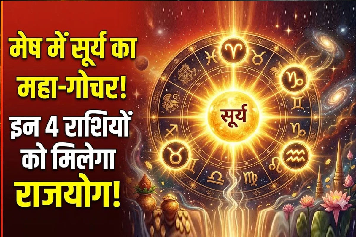 Surya Gochar 2026, Sun Transit in Aries 2026 : 14 अप्रैल 2026 को होने वाला सूर्य का मेष राशि में गोचर ज्योतिष की दृष्टि से बेहद महत्वपूर्ण माना जा रहा है।। ज्योतिषियों का कहना है कि यह बदलाव अच्छी किस्मत लाता है, और यह खास तौर पर इसलिए लकी है क्योंकि मेष राशि सूरज की उच्च राशि है। सूरज 15 मई तक मेष राशि में रहेगा, और उस दौरान, कुछ लोगों को धन और सफलता में बड़े सुधार देखने को मिल सकते हैं। खास बात यह है कि यह गोचर चार राशियों के लिए राजयोग जैसा प्रभाव देगा, जिससे उनकी जिंदगी में सकारात्मक बदलाव देखने को मिलेंगे।