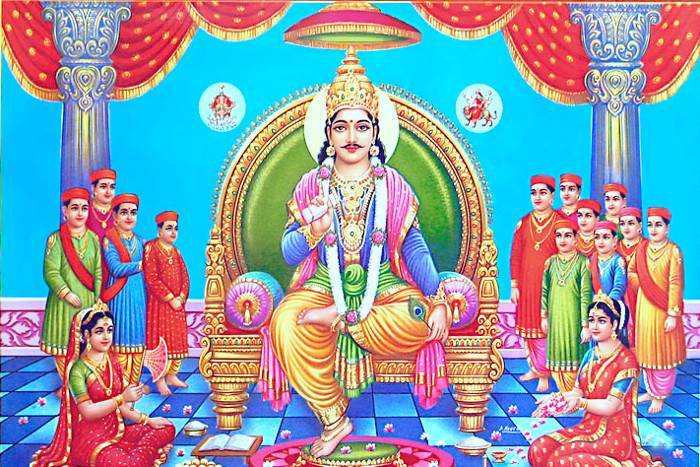 पौराणिक मान्यताओं के अनुसार सृष्टि के रचयिता भगवान ब्रह्मा ने एक बार सूर्य के समान अपने ज्येष्ठ पुत्र को बुलाकर कहा कि वह किसी विशेष प्रयोजन से समाधिस्थ हो रहे हैं और इस दौरान वह यत्नपूर्वक सृष्टि की रक्षा करें। इसके बाद बह्माजी ने 11 हजार वर्ष की समाधि ले ली। जब उनकी समाधि टूटी तो उन्होंने देखा कि उनके सामने एक दिव्य पुरुष कलम-दवात लिए खड़ा है।