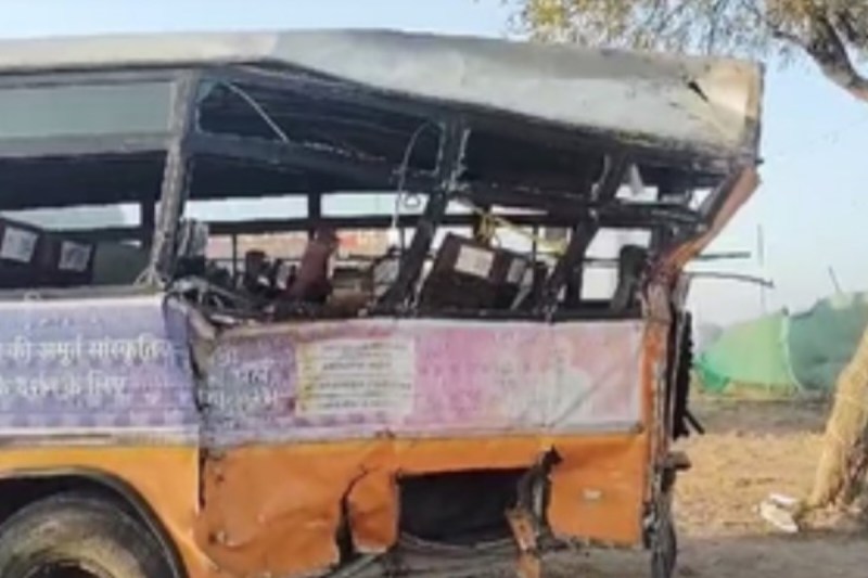 दुर्घटना के बाद क्षतिग्रस्त रोडवेज बस