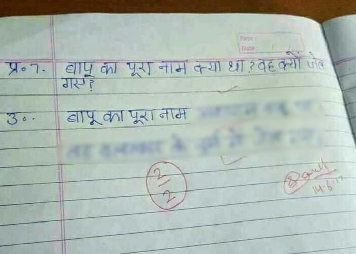 छात्र और शिक्षक के बीच यह प्रश्नोत्तरी निश्चित ही हास्य का केंद्र बनी हुई है, लेकिन कहीं न कहीं हमारे राष्ट्रपिता का मजाक ही बनाया गया है। पत्रिका उत्तर प्रदेश सोशल मीडिया पर वायरल हो रहे ऐसे मैसेजेज का विरोध करता है। हमारा मकसद इसे बढ़ावा देना नहीं, बल्कि एक जिम्मेदार समाचार संस्था होने के नाते समाज में क्या घटित हो रहा है हर गतिविधि को आप तक पहुंचाना है और लोगों को आगाह करना है कि अभिव्यक्ति की स्वतंत्रता का मतलब ये कतई नहीं है कि लोग हमारे देश के महापुरुषों के नाम पर ऐसा मजाक करें।
