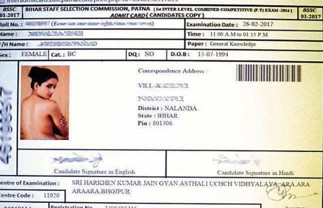 इस बार बिहार कर्मचारी चयन आयोग ने एक छात्रा के एडमिट कार्ड में न्यूड (अश्लील) फोटो लगा दी है। यह एडमिट कार्ड इंटर स्तरीय संयुक्त प्रवेश प्रतियोगिता परीक्षा के लिए जारी किया गया है। यह आठ जनवरी, 2017 को जारी हुआ है और इसकी परीक्षा 26 फरवरी को निर्धारित है।