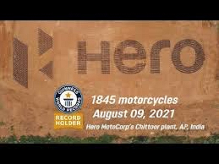 Hero MotoCorp के इस लोगो को काफी बड़े आकार में बनाया था। यह 1000x 800 फुट बड़ा था। बाइक को खड़ा कर अब तक का यह दुनिया में सबसे बड़ा ब्रांड लोगो है। वर्ष 2021 Hero MotoCorp के लिए यादगार साल है। इसकी वजह है कि कंपनी ने अपनी कुल 10 करोड़ मोटरसाइकिल की बिक्री पूरी की। दूसरा Honda से अलग हुए Hero MotoCorp को दस साल पूरे हो चुके हैं। अकेले होने के बावजूद कंपनी तगड़ा मुनाफा कमाया है।