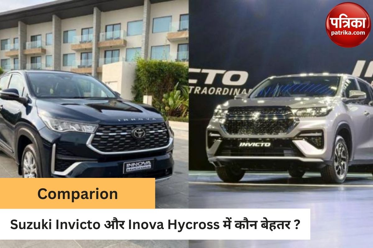 Maruti Suzuki Invicto vs Toyota Innova Hycross: मारुति सुजुकी ने अपनी सबसे महंगी कार इनविक्टो को हाल ही में लॉन्च किया है। मारुति सुजुकी इनविक्टो ऑटोमेकर के प्रीमियम नेक्सा लाइनअप की लेटेस्ट कार है। यह मारुति सुजुकी और टोयोटा के ग्लोबल पार्टनरशिप के तहत टोयोटा इनोवा हाइक्रॉस पर बेस्ड है। मारुति सुजुकी ने इसको प्रीमियम डिजाइन और शानदार फीचर्स के साथ भारतीय बाजार में पेश किया गया है। आइए जानते हैं कि मारुति सुजुकी इनविक्टो और टोयोटा इनोवा हाईक्रॉस में कैसे सी एएमपी बेहतर है।