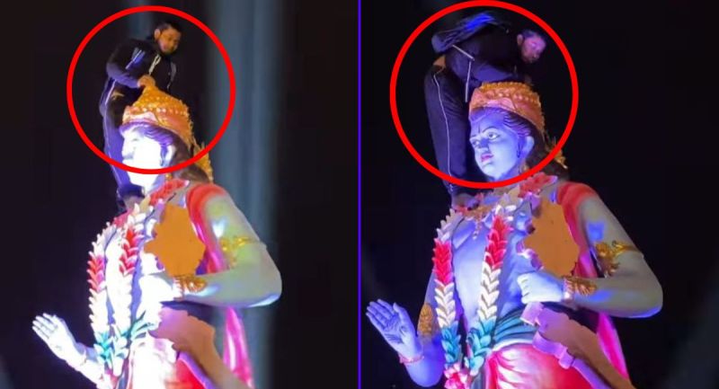 दरअसल, जगद्गुरु रामभद्राचार्य के 75वें जन्म दिवस के मौके पर रामनगरी अयोध्या में 14 से 22 जनवरी तक अमृत महोत्सव का आयोजन किया गया था। इस समारोह में रामचरितमानस पर आधारित थीम पार्क बनाया गया था, जिसमें भगवान राम की विशाल मूर्ति थी। वायरल हो रहे वीडियो में एक युवक भगवान राम की मूर्ति पर चढ़कर उसे तोड़ने की कोशिश कर रहा है। यह वायरल वीडियो 20 जनवरी का बताया जा रहा है।