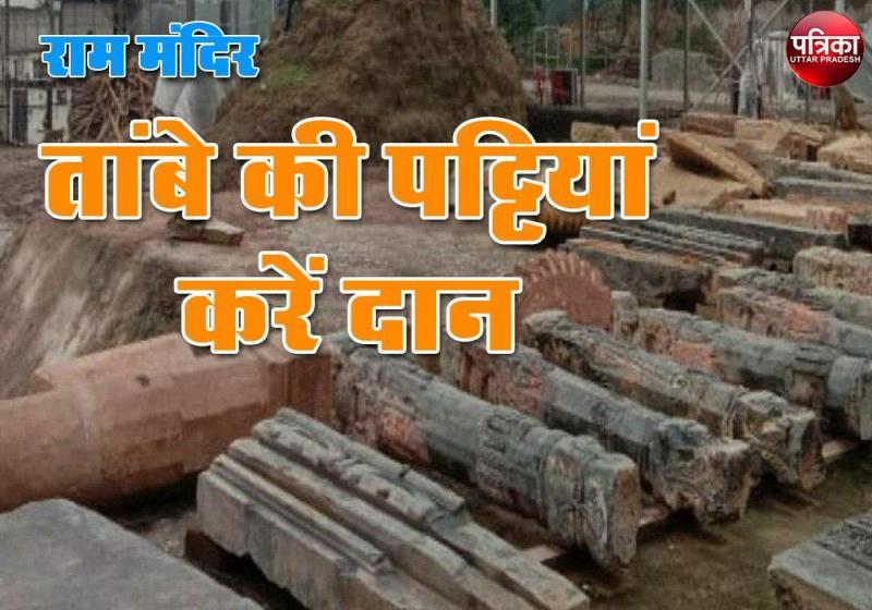 श्रीराम जन्मभूमि तीर्थ क्षेत्र ट्रस्ट की नई दिल्ली में बैठक के बाद ट्रस्ट के महासचिव चम्पत राय ने कहा कि यह तांबे की पट्टियां न केवल देश की एकात्मता का अभूतपूर्व उदाहरण बनेंगी, बल्कि मन्दिर निर्माण में सम्पूर्ण राष्ट्र के योगदान का प्रमाण भी देंगी। हमको इसकी जरूरत है। इसे हम लोगों से दान में लेंगे। इन पट्टियों में लोग अपने गांव-मोहल्ले का नाम लिखकर भेजें। हम उसको मंदिर में लगाएंगे। यह 18 इंच लंबी, तीन मिमी मोटी तथा 30 मिमी चौड़ी होंगे। उन्होंने कहा कि मंदिर के चारों तरफ परिक्रमा और उसके बाहर परकोटा बनेगा। यह आमजन की तरफ से सीधा योगदान होगा। इसके लिए हमको दो-दो इंच की दस हजार रॉड भी चाहिए। मंदिर निर्माण में 10,000 तांबे की पट्टियां व रॉड भी चाहिए। इसके लिए दानियों को आगे आने की जरूरत है।
