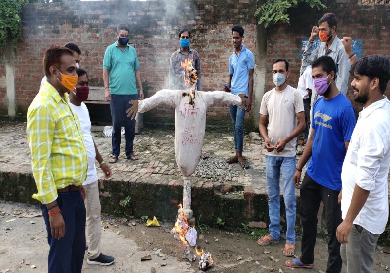 नेपाल पीएम के विरोध में सड़कों पर उतरे अयोध्या के युवा फूंका पीएम का पुतला