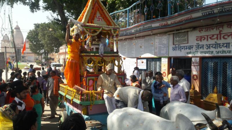 रामनगरी अयोध्या में निकाली गयी भव्य शोभायात्रा देश भर से आये जैन समुदाय के अनुयाइयों ने की कार्यक्रम में शिरकत