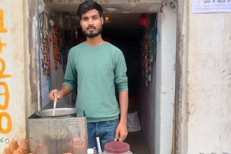 अपनी छोटी सी दुकान पर चाय बनाता सुमित।