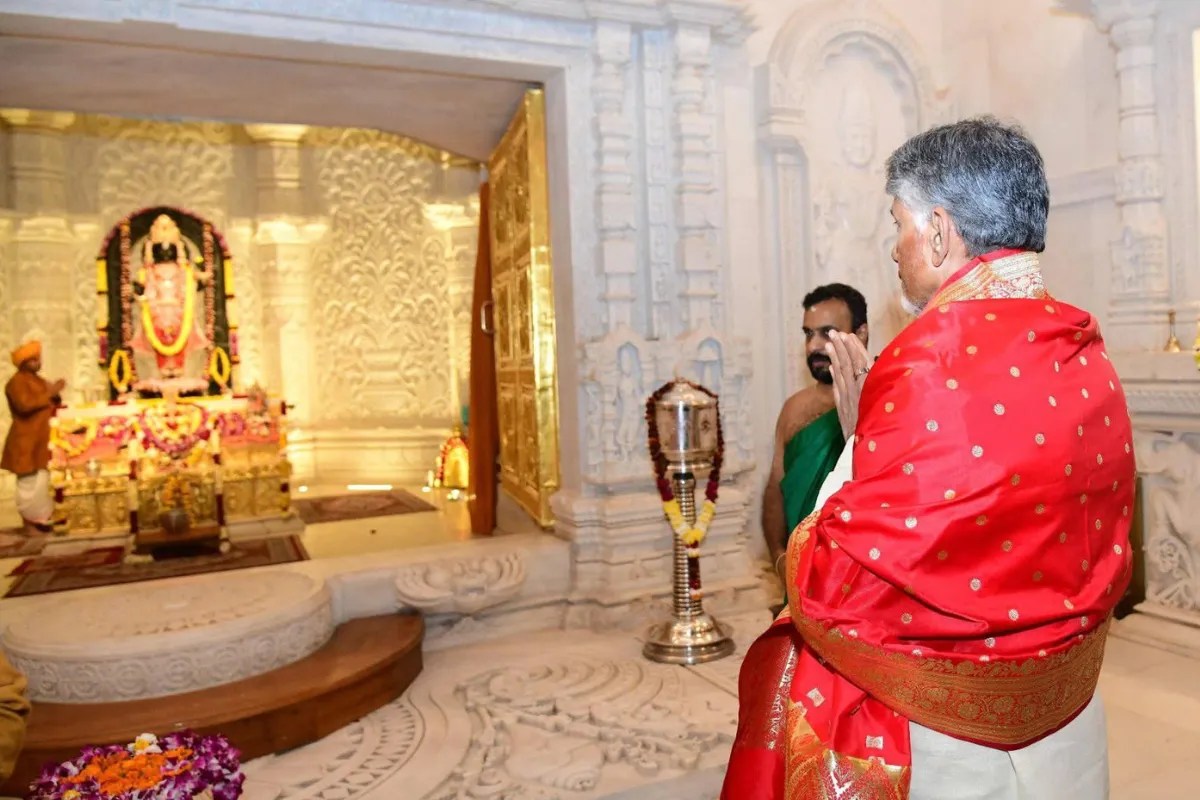 रविवार को आंध्र प्रदेश के मुख्यमंत्री चंद्रबाबू नायडू सुबह 11 बजे सरकारी विमान से अयोध्या के महर्षि वाल्मीकि एयरपोर्ट पर उतरे। वहां पर प्रभारी मंत्री सूर्य प्रताप शाही और डीएम निखिल टीकाराम फुंडे ने बुके देकर उनका स्वागत किया। वे उनके साथ गेस्ट हॉउस गए फिर वहां से सीधे राम मंदिर पहुंच कर रामलला का दर्शन कर विधिवत पूजन-अर्चना किये।