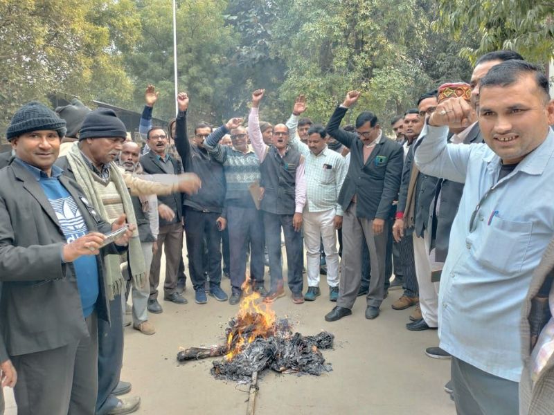 अधिवक्ताओं ने सपा नेता स्वामी प्रसाद मौर्य का पुतला फूंका ।
