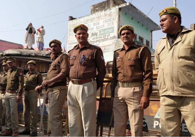 रामनगरी में चप्पे-चप्पे पर पुलिस का कड़ा पहरा है। रिपोर्ट के मुताबिक, वरिष्ठ पुलिस अफसरों के साथ ही 10 एएसपी, 21 डीएसपी, 160 इंस्पेक्टर, 700 कांस्टेबल, 42 कंपनी पीएसपी, 05 कंपनी आरएएफ, एटीएस कमांडो की तैनाती अयोध्या में की गई है। बड़ी संख्या में घुड़सवार पुलिसकर्मी सुबह से ही गश्त कर रहे हैं।