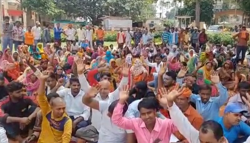 वेतन न मिलने से नाराज सफाई कर्मियों ने दिया धरना