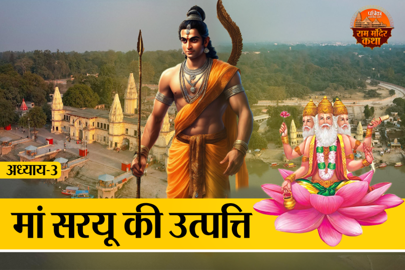 जब विष्णु भगवान की नाभि से उत्पन्न कमल पर बैठे ब्रम्हा जी ने विचार किया कि बिना तप किए सृष्टी की रचना कैसे हो पाएगी। तब उन्होंने भगवान विष्णु की उपासना किया, जिसके बाद विष्णु ने उनको दर्शन दिया। ब्रम्हा जी के अगाध प्रेम को देखते हुए भगवान विष्णु की आंखे नम हो गई और उसमें से प्रेमाश्रु निकलने लगे। जिसे ब्रम्हा जी ने अपने कमंडल में रोक लिया और मानस सरोवर का निर्माण किया। अयोध्या में वैवस्वत मनु नाम के राजा हुए जो भगवान श्रीराम के प्रथम पूर्वज थे। राजा मनु के पुत्र इक्ष्वाकु हुए जिन्होंने अपने गुरु वशिष्ठ से अयोध्या में सरोवर निर्माण की बात कही। जिसके बाद वशिष्ठ ऋषि ने अपने पिता ब्रम्हा से सरयू के अवतरण की प्रार्थना किया, ब्रम्हा जी ने अपने कमंडल से ही सरयू का अवतरण कराया…