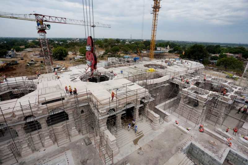 तस्वीर के माध्यम से बताया गया कि राम मंदिर के भूतल निर्माण का कार्य लगभग पूरा हो गया है और जल्द ही चल रहे छत निर्माण के कार्य को पूरा करने के बाद मंदिर के अंदर के अन्य कार्यों को भी पूरा करने का कार्य किया जाएगा।