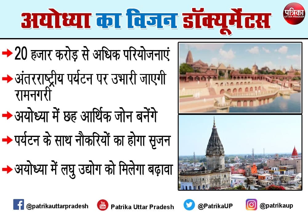 पीएम को बताया गया कि अयोध्या डेवलपमेंट अथॉरिटी ने अयोध्या के विकास के लिए 20 हजार करोड़ के प्रोजेक्ट तैयार किए हैं। 1,100 एकड़ में नव्य अयोध्या बनेगी। इस वैदिक सिटी का खाका नागर शैली में खींचा जाएगा। प्राधिकरण ने अगले 100 साल की जरूरतों के हिसाब से विकास योजनाएं बनायी हैं। हालांकि प्राथमिकता 30 साल के प्लान को मिलेगी।