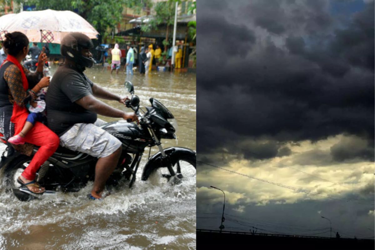 IMD के अनुसार आसमान में काले बादल छाए होने से भारी बारिश होने की संभावना है।