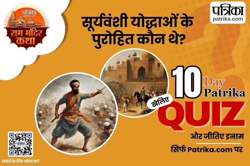 Note- पूरी कथा पढ़ने के बाद अब यहां आपको एक क्विज दिया जा रहा है। आपको कथा पर आधारित कुछ प्रश्नो के जवाब देने हैं। इस क्विज में जीतने वाले को पत्रिका डॉट कॉम की तरफ से सर्टिफिकेट दिया जाएगा। साथ ही, उसे 50 लाख से अधिक फॉलोअर वाले पत्रिका उत्तर प्रदेश के सोशल मीडिया पेजेज पर फीचर होने का मौका भी मिलेगा। इसके अलावा एक लकी विजेता को मिलेगा पत्रिका समूह की ओर से राम मंदिर ट्रिप का मौका। राम मंदिर कथा क्विज का आयोजन पत्रिका की तरफ से अगले 100 दिनों तक लगातार किया जाना है। ऐसे में आप रोजाना पत्रिका उत्तर प्रदेश को फॉलो कर क्विज खेल सकते हैं। साथ ही अपने दोस्तों, घर-परिवारवालों और रिश्तेदारों को भी क्विज खेलने को आमंत्रित कर सकते हैं।
