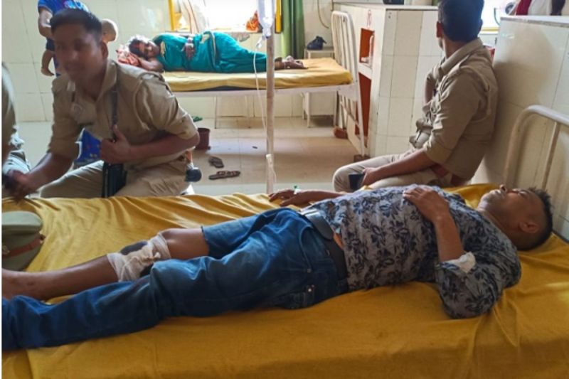 अयोध्या में एनकाउंटर के बाद अस्पताल में मौजूद पुलिस।