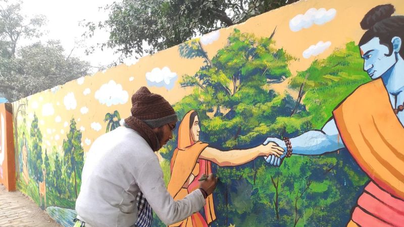 अयोध्या धाम की प्रमुख दीवारों पर वॉल पेंटिंग कार्यशाला, सरयू नदी के तट पर भगवान राम पर आधारित रेत शिल्प के अलावा राम बाल लीला, कलाकृतियों की प्रदर्शनी, मेंहदी एवं फूलों की वाटिका और फोटोग्राफी जैसे कार्यक्रमों का आयोजन किया जा रहा है। 18 जनवरी से कार्यक्रम पूरी गति से शुरू हो चुके हैं। प्राण प्रतिष्ठा तक और इसके बाद भी अनवरत जारी रहने वाले हैं। राज्य ललित कला अकादमी उत्तर प्रदेश की निदेशक डॉ. श्रद्धा शुक्ला ने बताया कि अयोध्या धाम के महर्षि वाल्मीकि अंतरराष्ट्रीय एयरपोर्ट के पास सीआरपीएफ की दीवार पर लगभग तीन हजार वर्गफीट, अयोध्या कलेक्ट्रेट भवन की दीवार पर लगभग 1,500 वर्गफीट एवं राम की पैड़ी मार्ग पर स्थित सिंचाई विभाग के भवन की दीवार पर लगभग 1,200 वर्गफीट के क्षेत्र में विभिन्न जनपदों के लगभग 40 कलाकार वॉल पेंटिंग कर रहे हैं।