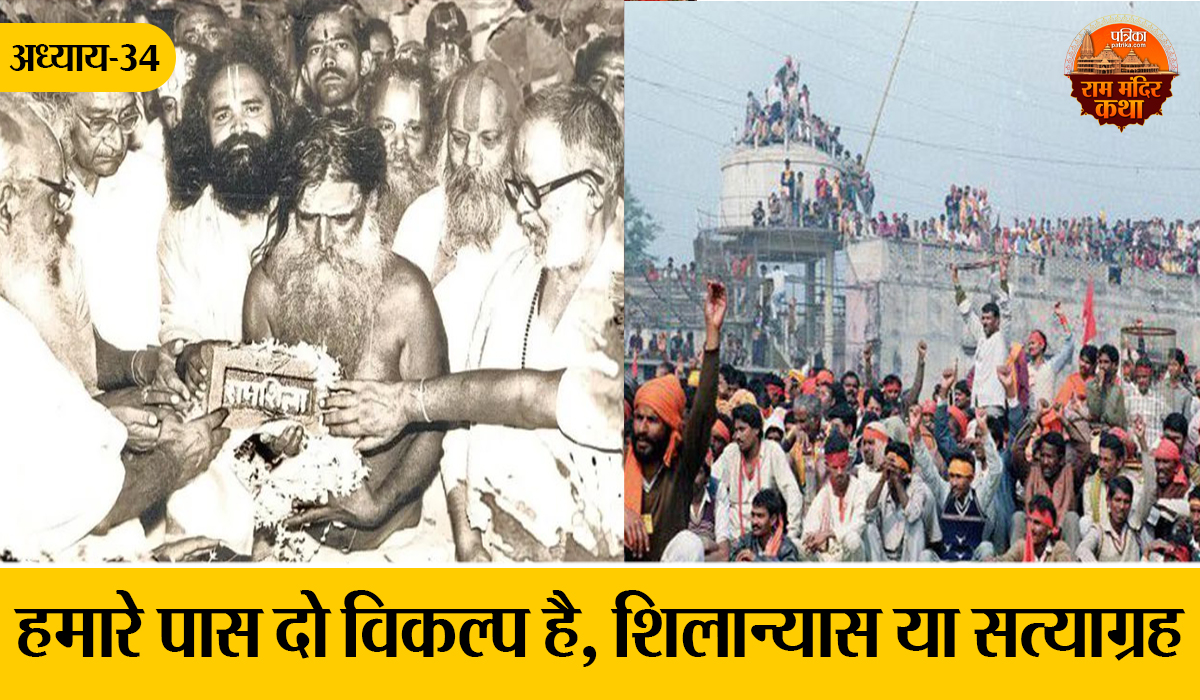 Ram Mandir Katha: गाय के गोबर से लीप कर केसरिया झंडा गाड़ दिया गया। यहीं पर होगा शिलान्यास। काशी के विद्वानों और राममंदिर के वास्तुकार चंद्रकांत सोमपुरा ने तय किया कि विराजमान रामलला से 129 फुट पूरब दिशा में और वहां से दक्षिण दिशा में साढ़े सत्रह फुट पर शिलान्यास किया जाएगा। (वर्तमान राममंदिर निर्माण भी वहीं से हो रहा है।) दुनिया के 34 देशों से रामशिलाएं अयोध्या आनी शुरू हो गई। देश के गांव-गांव से पूजित रामशिलाएं अयोध्या आ रही थीं। रामभक्त और बजरंग दल के कार्यकर्ता पूरे जोश से इन शिलाओं को अयोध्या ला रहे थे।