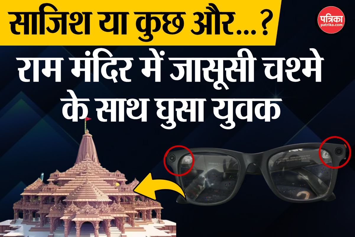 राम जन्मभूमि परिसर में सभी चेकिंग प्वाइंट पार कर खुफिया कैमरों वाले चश्मे के साथ एक युवक राम मंदिर में प्रवेश कर गया। फोटो लेने के दौरान चश्मे की लाइट जलने पर वाचर को संदेह हो गया। इस पर युवक को पकड़ लिया गया। उसकी पत्नी भी साथ में थी। सुरक्षा एजेंसियों युवक से पूछताछ कर कर रही हैं।